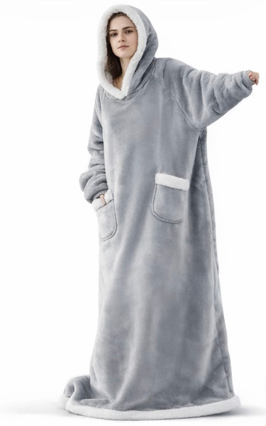 180cm Super Long Flannel Blanket Pyjamas with Sleeves Winter Hoodies Sweatshirt Women Men Pullover Fleece Giant Oversized Outdoor